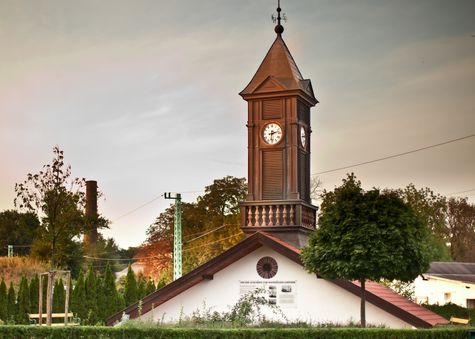 Hier stehe ich als Zeitsymbol im schönen, neuen Kleid auf niedrem Dach, ich fühl' mich wohl, als Stück Vergangenheit. Einst thronte ich auf hohem Dach im weiten Hallenrund, und meine Uhr schlug Tag und Nacht. Sie mahnte Stund um Stund das Wesen Mensch zum Arbeitsfleiß in einer harten Fron, und ein Gemisch von Staub und Schweiß erbrachte kargen Lohn.